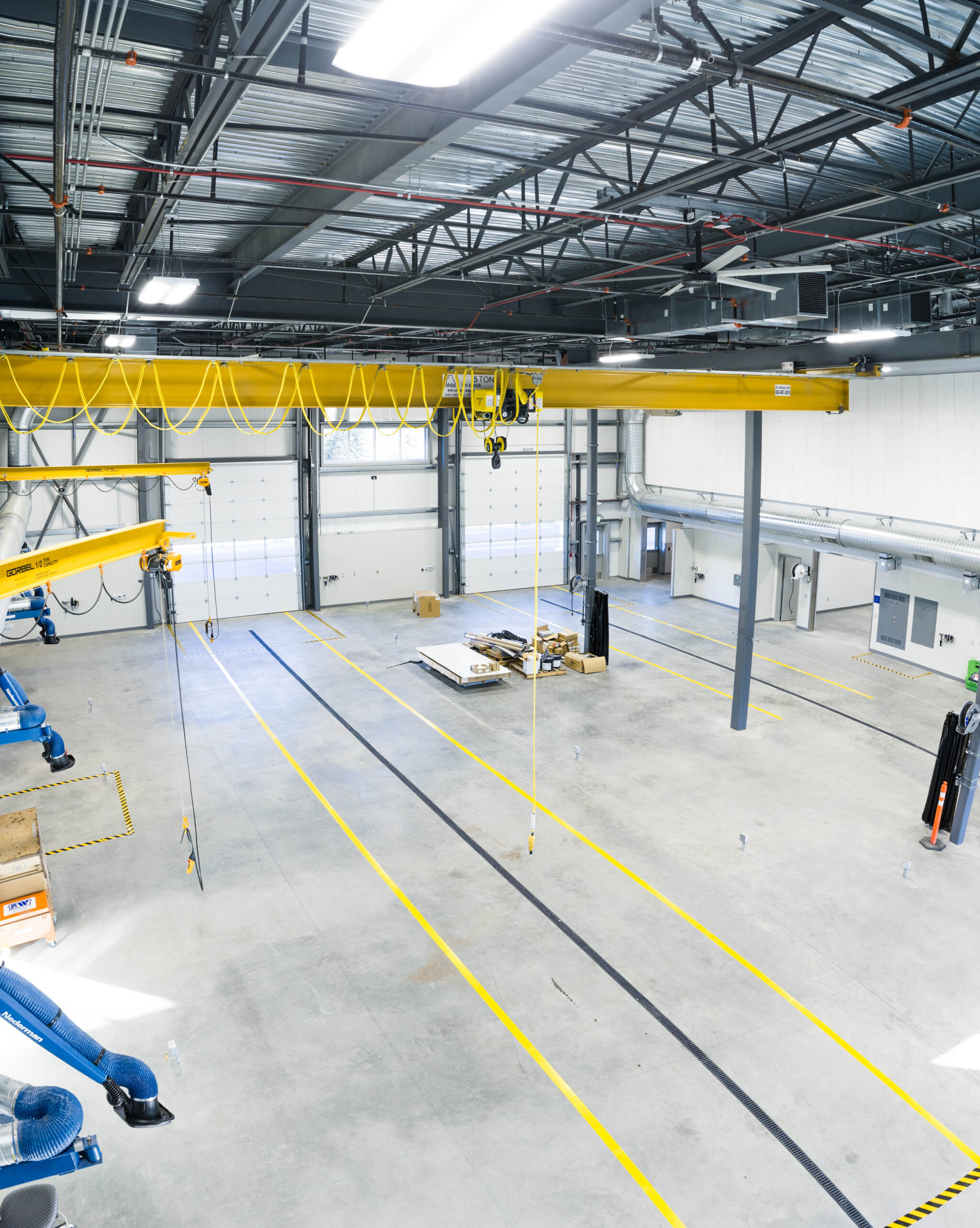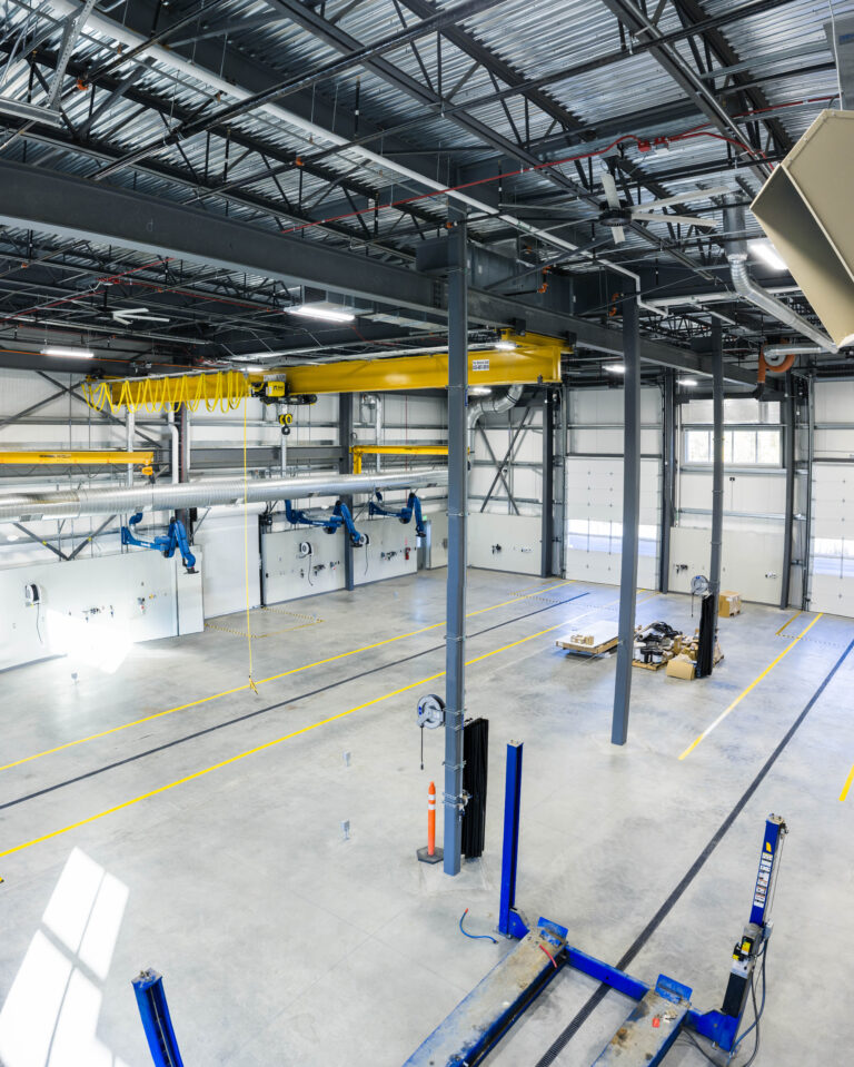 This new maintenance facility at the Kenai Refinery supports daily operations and future expansion. It includes twin high-bay fabrication and mechanical shops, tool storage, a break room, locker and training rooms, open office areas, and a conference room. Energy-efficient LED lighting with automatic controls enhances safety and reduces energy use. The design allows for future growth through a new Homer Electric Association service and an extended campus fiber-optic loop. Integrated ventilation systems support industrial welding, warehouse, and office areas, while a commercial trench drainage system with an oily waste vault ensures safe spill management. Acoustic design measures reduce noise transfer from high-bay activities to office spaces, creating a safe, efficient, and comfortable work environment.
