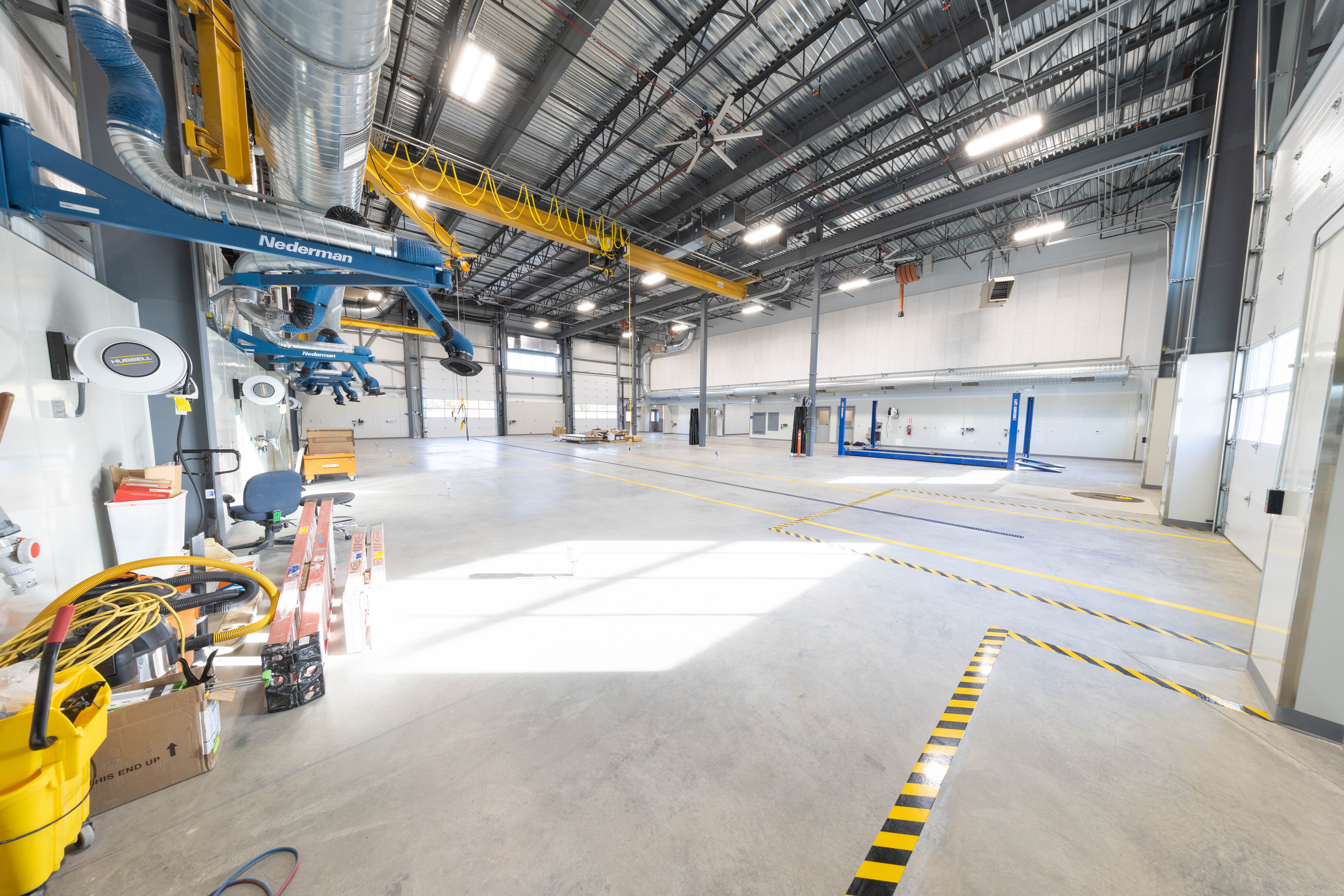 This new maintenance facility at the Kenai Refinery supports daily operations and future expansion. It includes twin high-bay fabrication and mechanical shops, tool storage, a break room, locker and training rooms, open office areas, and a conference room. Energy-efficient LED lighting with automatic controls enhances safety and reduces energy use. The design allows for future growth through a new Homer Electric Association service and an extended campus fiber-optic loop. Integrated ventilation systems support industrial welding, warehouse, and office areas, while a commercial trench drainage system with an oily waste vault ensures safe spill management. Acoustic design measures reduce noise transfer from high-bay activities to office spaces, creating a safe, efficient, and comfortable work environment.