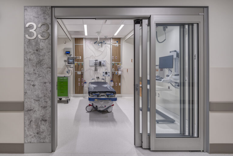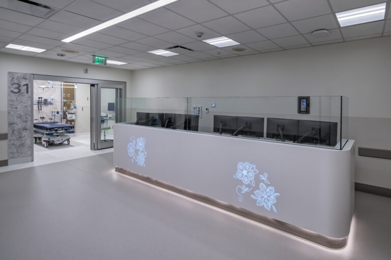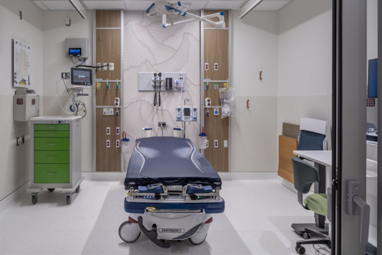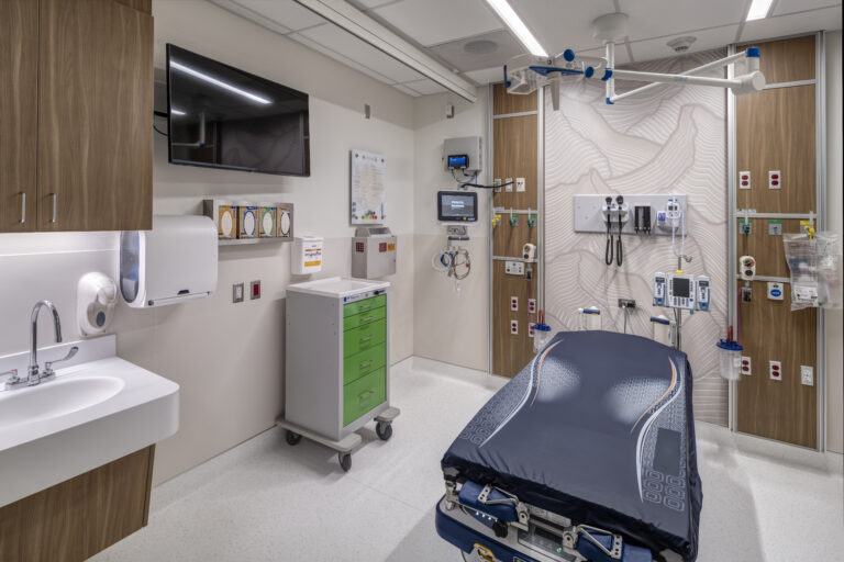As part of the Alaska Native Medical Center Emergency Services Expansion project a temporary emergency department was constructed to sustain operations throughout the construction of the overall project. Maintaining 24/7 emergency operations throughout construction requires precise design coordination and phased planning to ensure a clean and safe environment for patients and staff. When fully complete the Emergency Services Expansion project will include an expanded and modernized emergency department, expanded PACU, and surgery services units within a new six-story tower to support future hospital growth. Through close collaboration with the design team and ANMC stakeholders, AMC is delivering a facility that enhances patient care and meets the community’s growing healthcare needs.
