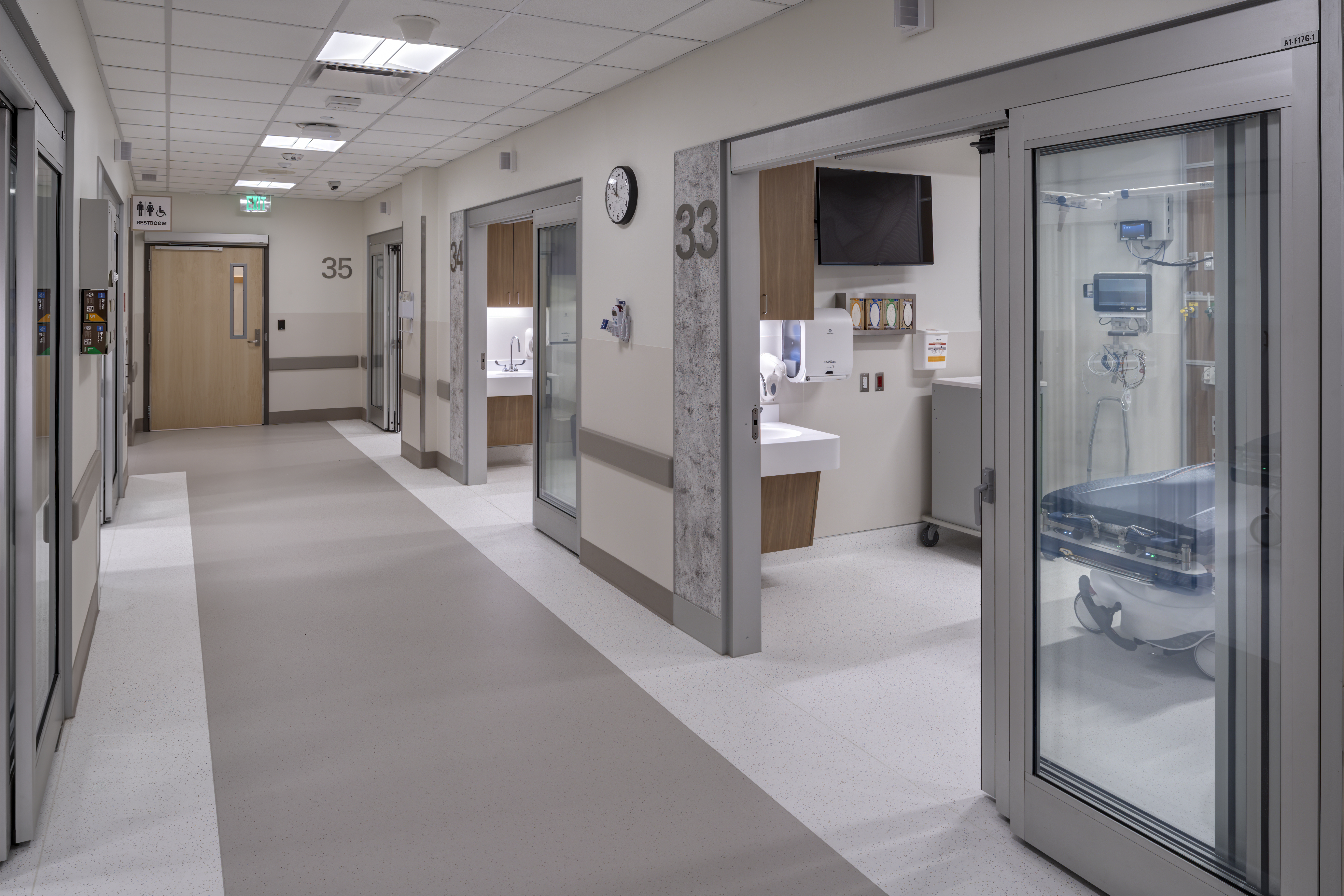As part of the Alaska Native Medical Center Emergency Services Expansion project a temporary emergency department was constructed to sustain operations throughout the construction of the overall project. Maintaining 24/7 emergency operations throughout construction requires precise design coordination and phased planning to ensure a clean and safe environment for patients and staff. When fully complete the Emergency Services Expansion project will include an expanded and modernized emergency department, expanded PACU, and surgery services units within a new six-story tower to support future hospital growth. Through close collaboration with the design team and ANMC stakeholders, AMC is delivering a facility that enhances patient care and meets the community’s growing healthcare needs.
